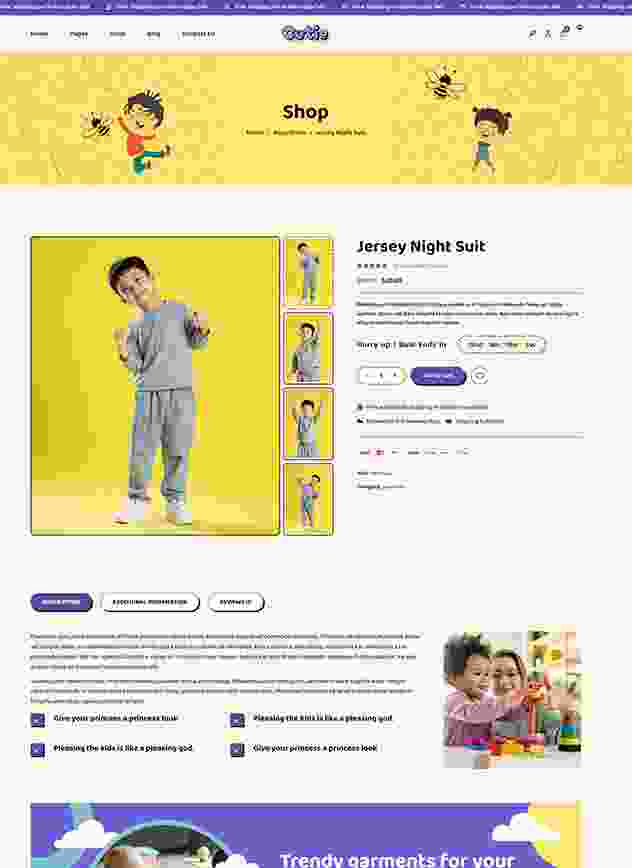 What Type Of Websites Can I Build With This Theme?Cutie | Kids Store WordPress Theme is elegant and colorful kid store product for online baby store, baby shopping store, baby boutique, baby fashion store, kids clothing store, and any single product shop. Will I Get All The Demos For Single Purchase With Lifetime Validity?Yes, you will get all the pre-made demos with this package in a single purchase for lifetime validity. As our customer, you will also be eligible to use the new demos we regularly update at no extra charge.Can I Change The Theme Language To My Local Language? Yes, the theme is compatible to adjust to different languages. Read more about choosing the language for your theme from the documentation.Why The Price Of Cutie Is Affordable Compared To Other Themes Providing Similar Features?With our expertise of more than 10 years, we know what it takes to build a quality product. Our pricing brings justice to our work. We don’t offer low-cost items; also, we don’t cost you a fortune. We balance quality and affordability, and that’s where we succeed.How To Install The Cutie Theme In WordPress?Check out the step-by-step instruction (with video) from our documentation to install Cutie Theme. It is a very simple process that takes only around a few minutes to set up.How Fast Is Your Support?We will get back to you within 12 hours of your mail. We are striving hard to answer you faster than 12 hours. However, that depends upon the number of support tickets we receive every day.
